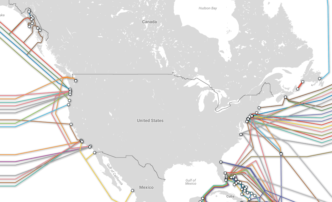 Sovereignty doesn't imply isolation, but rather also means the ability to forge relationships with other sovereign entities on the basis of equality. Here again, Canada relies heavily on US based internet infrastructure to reach third countries. With only two trans-oceanic fibre-optic cables landing on Canada's Atlantic coast, compared to 13 in the US, the great majority of Canada's internet communication with Europe passes through the US. Canada has no fibre optic cable landing on its Pacific coast, so all internet traffic with Asia involves US routing.
